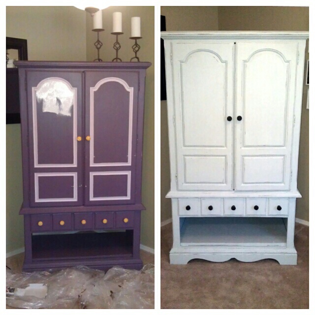 sold my old entertainment center for $90 and bought this dresser for $60, painted white, distressed and fixed up with paint I already had.